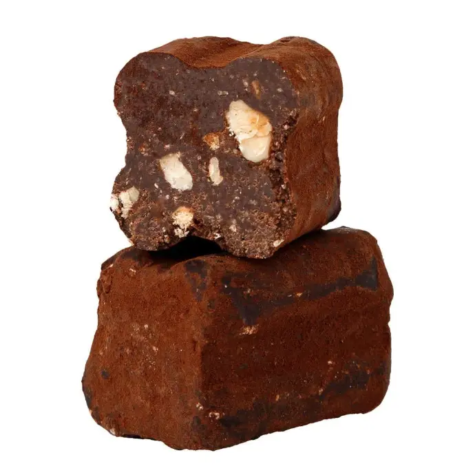 Ez a Tartufo dolce fondente 70% e fave di cacao a tiszta, karakteres csokoládéélmény megtestesítője. A 70%-os étcsokoládé mély, határozott ízvilága találkozik a karamellizált kakaóbab-darabok roppanós textúrájával és a piemonti mogyoró természetes gazdagságával. Az eredmény egy letisztult, erőteljes aromaprofil – kompromisszumok nélkül.
